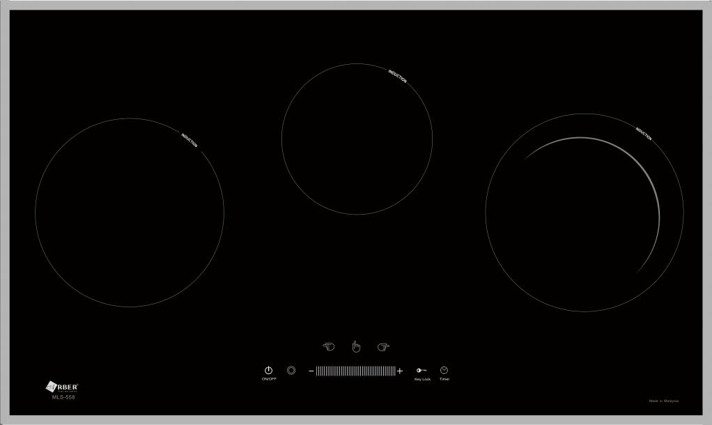 * Bàn phím điều khiển Slider chung 3 bếp , 8mức công suất |