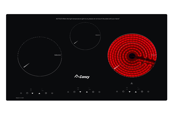 Canzy CZ ES23 sử dụng mặt kính cường lực màu đen sang trọng 3 bếp với 3 bảng điều khiển cảm ứng riêng biệt đơn giản dễ sử dụng. Màn hình hiển thị LED, An toàn với phím khóa trẻ em. với tính năng này các chương trình nấu nướng mà bạn đã chọn không bị thay đổi, bếp tự động ngắt khi không có nồi, thời gian hẹn giờ lên tới 99 phút.