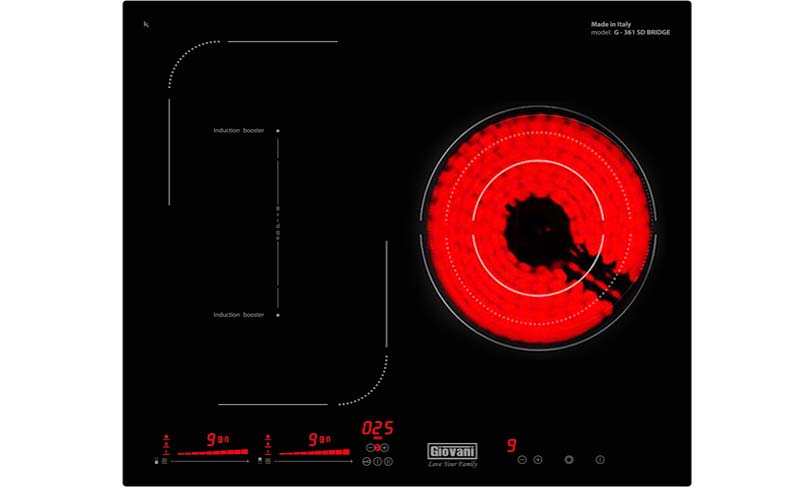 - Bếp điện từ hỗn hợp với bếp 2 từ + 1 điện tổng công suất 5900 w ( L12100/3700 – L2 2100/3700 – R140-210/1000/2200 )Điều