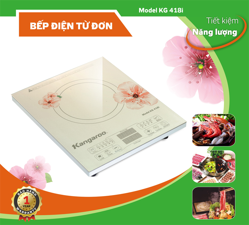 Bếp điện từ đơn Kangaroo KG418i là sản phẩm bếp cao cấp của Kangaroo. Bếp điện từ hay còn gọi là bếp từ, bếp cảm ứng, bếp điện cảm ứng. Trong tiếng Anh bếp từ được gọi là Induction cooker trong đó induction có nghĩa là cảm ứng. Loại bếp cảm ứng này ứng dụng cảm ứng điện từ, cụ thể là dựa trên nguyên lý từ trường trong cuộn dây và dòng điện cảm ứng (Foucault) để cấp nhiệt cho nấu nướng.