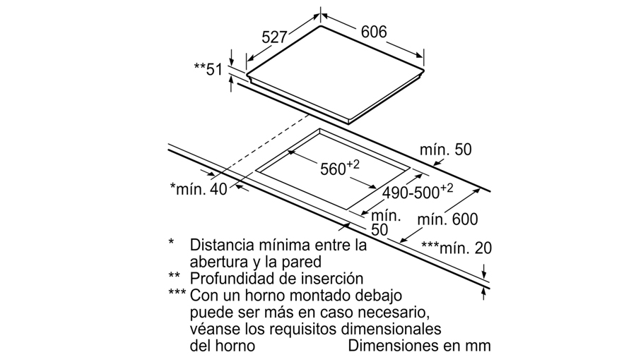 Vùng nấu bên trái: 1 x Ø 380 x 240mm, 3.3 KW (có thể tăng đến 3.7 KW); hoặc 2 x Ø 190mm, 2.2 KW (có thể tăng đến 3.7 KW)