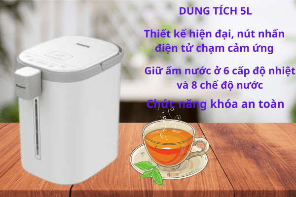 Đặc biệt, sản phẩm bình thủy điện Kangaroo KG5K1 được biết đến nhờ có dung tích lớn, công suất hoạt động mạnh mẽ, cho khả năng đun sôi nước nhanh chóng và được trang bị nhiều tính năng tiện lợi.