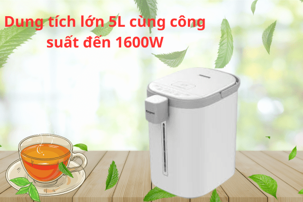 Dung tích bình chứa lớn của bình thủy Kangaroo KG5K1 tới 5 Lít, đảm bảo đáp ứng rất tốt cho mọi nhu cầu dùng nước tại công ty, văn phòng làm việc, gia đình đông người. Bình thủy điện Kangaroo có công suất lớn lên đến 1600W cho khả năng đun sôi nước nhanh chóng đáp ứng nhu cầu dùng nước thường xuyên, tiết kiệm thời gian.