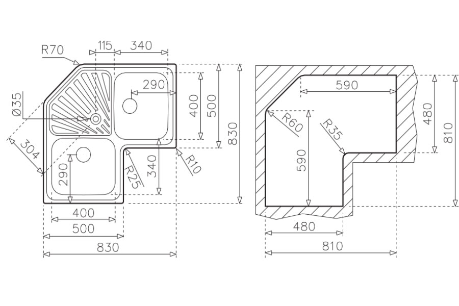 Thông số của chậu rửa CLASSIC 2B 1D: