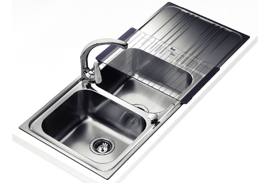 Chậu rửa Teka – COSMOS 2B 1D Nhập khẩu nguyên chiếc từ châu Âu gồm 2 hộc rửa kết hợp với bàn chờ tiện dụng kết hợp với nút nhấn pop-up chỉ cần vặn nút gắn trên thành chậu, có thể đóng/mở nắp chắn rác mà không cần phải chạm tay xuống đáy chậu rất tiện dụng