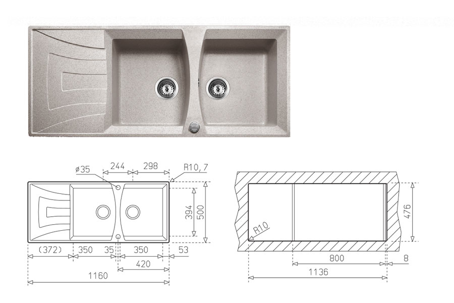 Thông số của chậu rửa UNIVERSO 2B 1D GT: