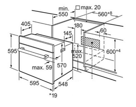 + Kích thước hộc tủ: 585-595C x 560-568R x 550S mm