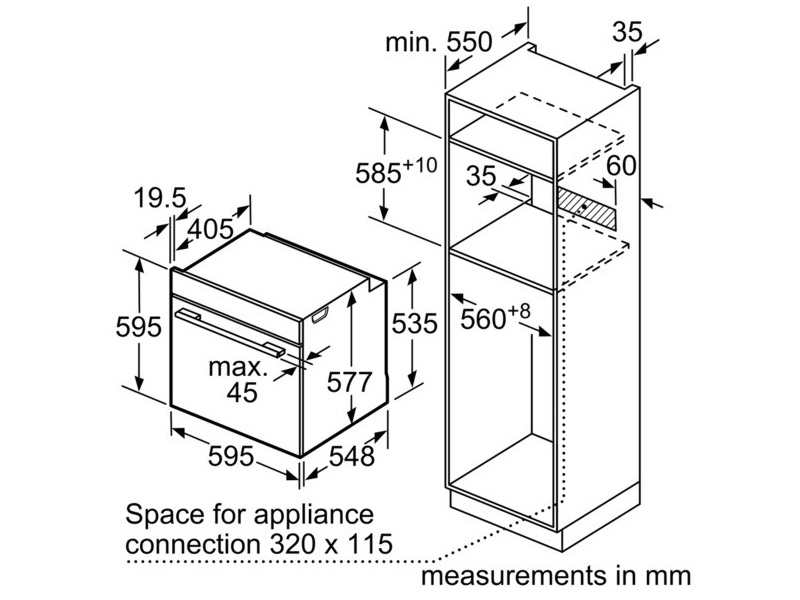 + Kích thước hộc tủ: 585 – 595C x 560R x 568S mm