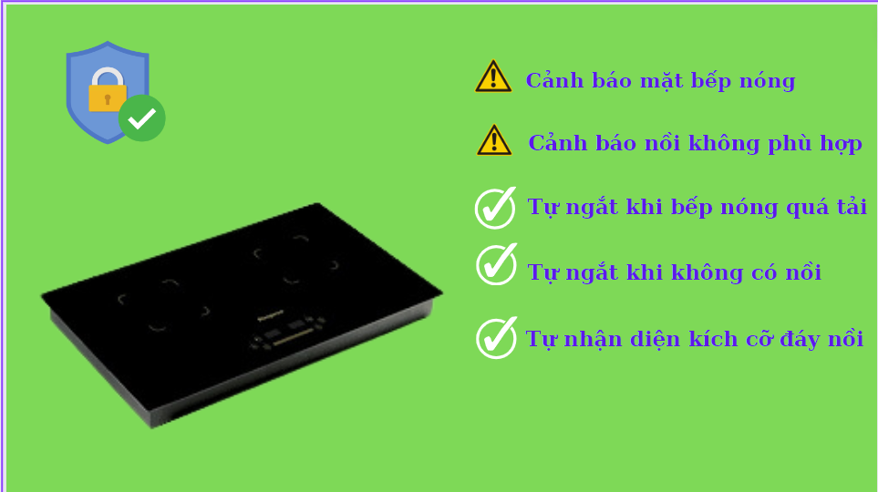 Bếp từ còn được trang bị nhiều tính năng thông minh giúp tối đa an toàn khi sử dụng: