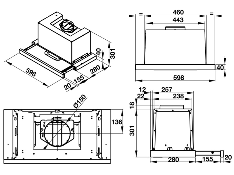 – Kích thước sản phẩm: 598R x 435S x 301C mm