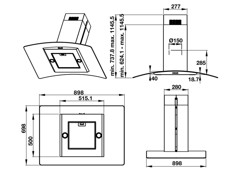 – Kích thước sản phẩm: 898R x 698S x 624 – 1145C mm