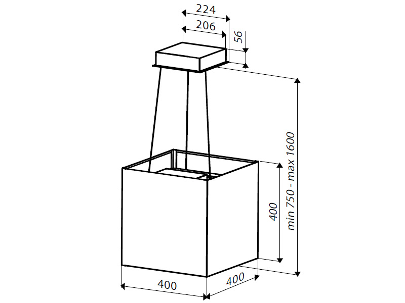 – Kích thước sản phẩm: 400R x 400S x 750 – 1600C mm