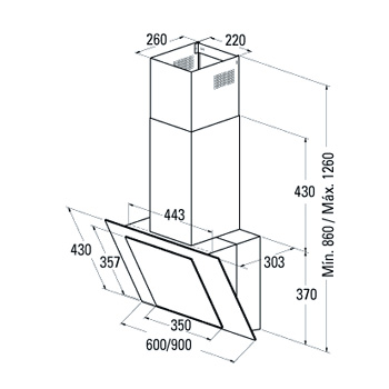 Hood CATA Ceres 900XGBK Treo tường, Chiều rộng 90 cm, 560 m³ / h, Kính đen, Hiệu suất năng lượng loại E, 61 dB