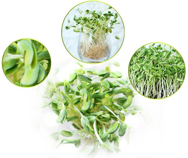 * Cây mầm phát triển hoàn toàn nhờ nước và oxy nên đảm bảo tuyệt đối sạch, đảm bảo vệ sinh an toàn thực phẩm.
