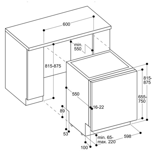 - Kích thước sản phẩm: 815-875C x 600R x 550S mm