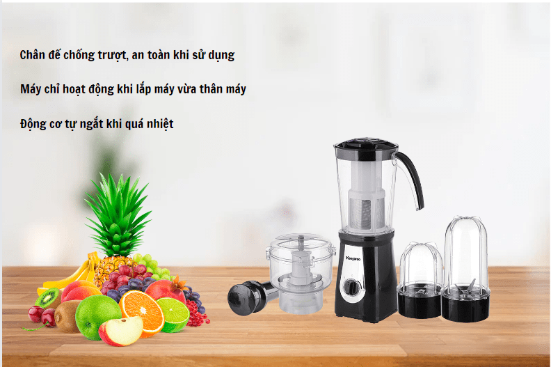 Máy xay sinh tố Kangaroo KG4B4 có chân đế chống trượt và tính năng tự ngắt khi quá tải giúp đảm bảo an toàn khi sử dụng
