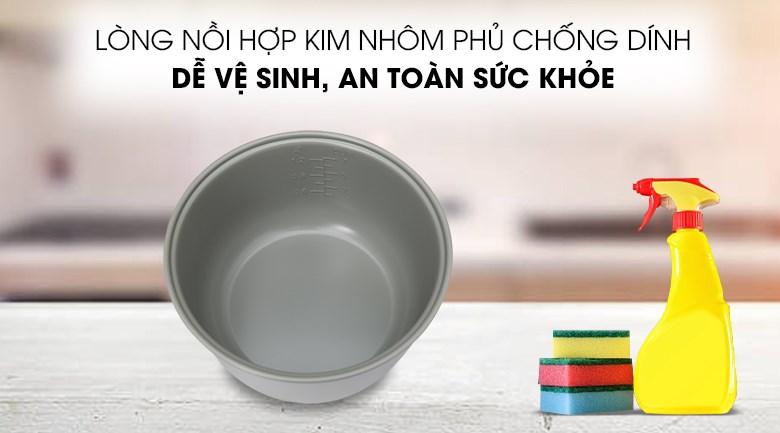 Với chất liệu lòng nồi bền tốt, giúp nấu cơm không bị dính cháy, đáy nồi tiếp xúc trực tiếp với mâm phát nhiệt cho cơm chín nhanh, không bị cháy khét, dễ dàng cho bạn vệ sinh sạch sẽ, đồng thời an toàn sức khỏe cho mọi thành viên trong gia đình.
