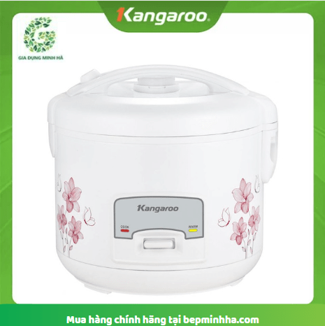 Nồi cơm điện nắp gài Kangaroo, với thiết kế màu trắng trang nhã kèm hoa văn đẹp mắt, sang trọng, tô điểm cho không gian bếp nhà bạn