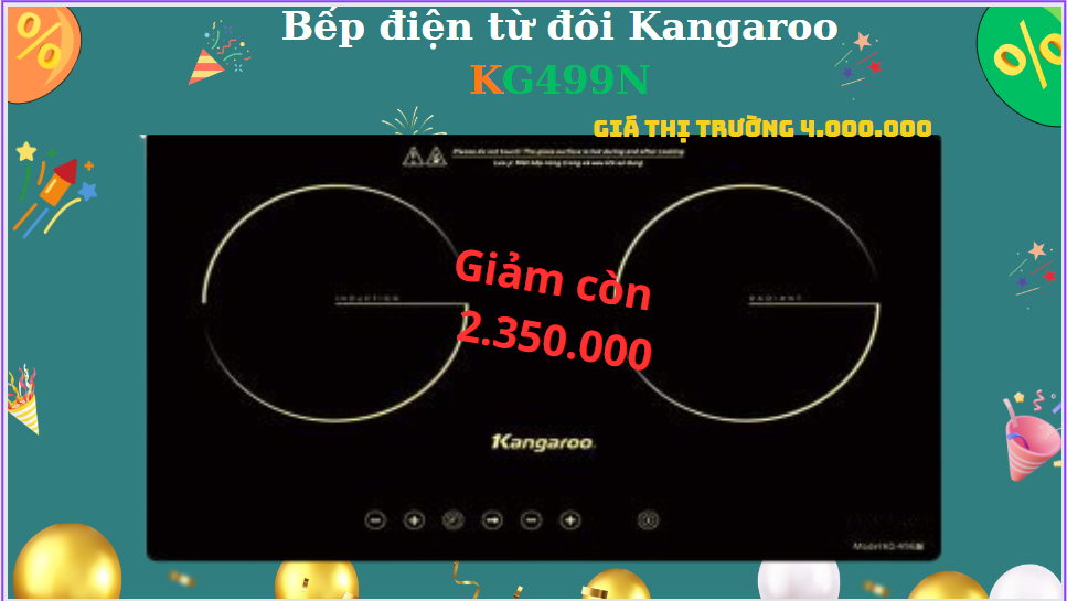 5.Bếp hồng ngoại điện từ đôi Kangaroo KG499N