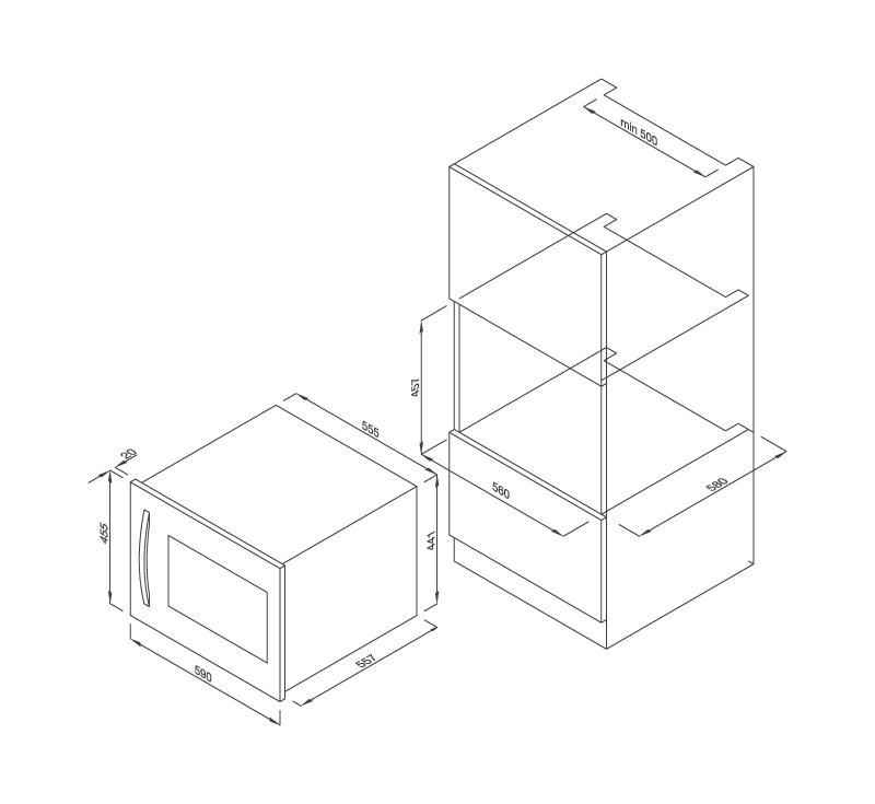 • Kích thước: W590 x D557 x H455 mm