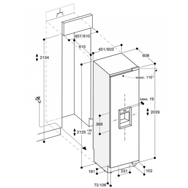 - Kích thước: 603R x 2125C x 608S mm